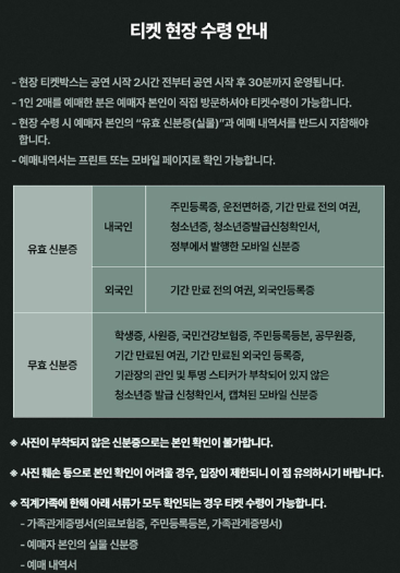 - 예매자 본인 직접 수령 필수