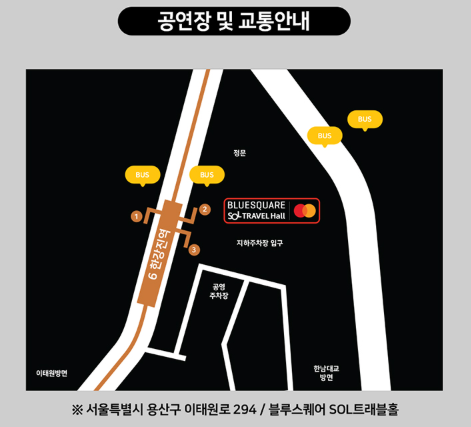 - 공연장소: 블루스퀘어 SOL트래블홀 (서울 용산구 이태원로 294)