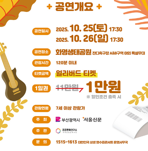 자연 속에서 펼쳐지는 가을 야외 공연으로, 선선한 날씨와 함께 음악을 즐기기 딱 좋은 타이밍이에요.