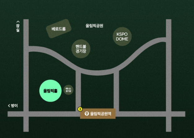 공연장 주소: 서울특별시 송파구 올림픽로 424 (방이동 88-2) 올림픽공원 올림픽홀