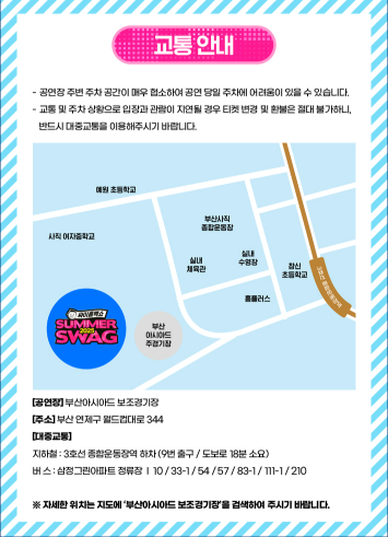 - 공연 장소: 부산아시아드 보조경기장 (연제구 월드컵대로 344)
