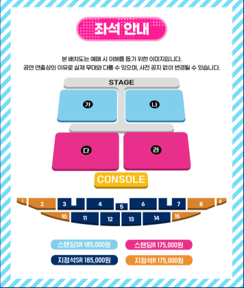 - 스탠딩석: 입장 번호 기준, 공연 2시간 전부터 대기, 1시간 30분 전 입장 시작