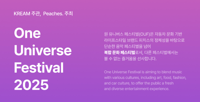 '2025 원 유니버스 페스티벌(ONE UNIVERSEFESTIVAL)'이 오는 8월 15일~16일 서울대공원 주차광장에서 개최됩니다. 찰리 XCX와 찰리 푸스의 내한 출연으로 화제를 모은 이번 뮤직 페스티벌은 KREAM 앱에서 예매 가능하며, 티켓 가격, 공연 정보, 라인업, 관람 팁을 한눈에 정리했습니다.