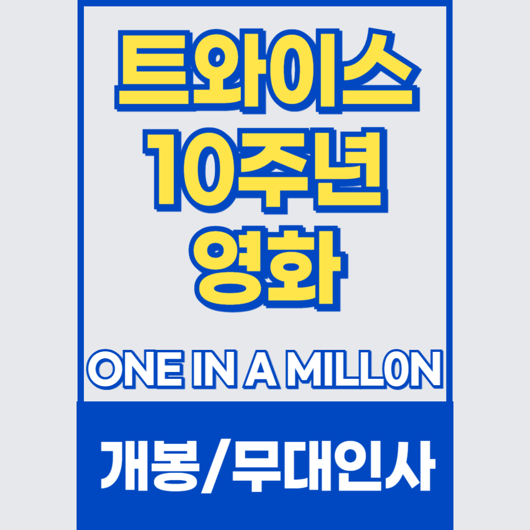 트와이스 데뷔 10주년 기념 다큐멘터리 영화 'ONE IN A MILL10N'이 10월 20일 CGV 단독 개봉! 무대인사 일정, 개봉주차 한정 굿즈 이벤트, 전국 상영관 정보까지 총정리. 팬이라면 절대 놓치지 마세요!