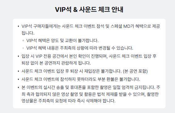 | VIP석 | 230,000원 | 사운드 체크 참여 + 단독 굿즈 제공 |