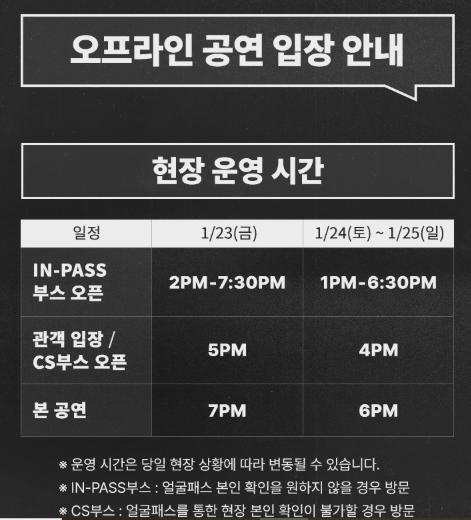 오프라인 공연 입장 시간